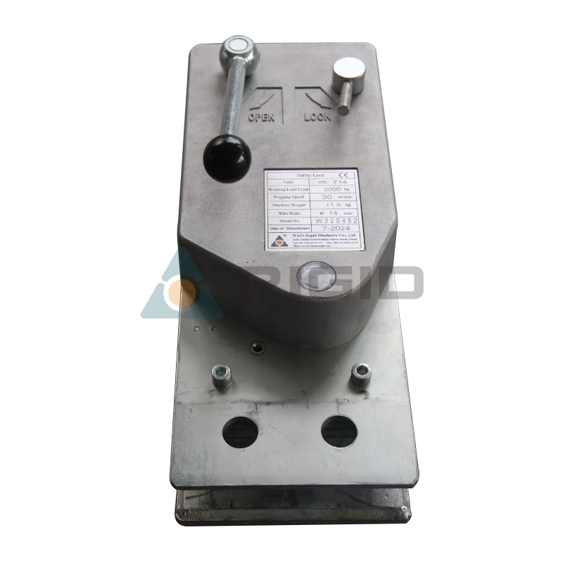 Princípio da funçãoNormalmente funciona como um bloqueio de segurança acionado por centrífuga. Quando o equipamento (como um elevador ou plataforma suspensa) desce a uma velocidade que excede o valor pré-definido, os pesos de vola dentro da fechadura de segurança geram uma força centrífuga que supera a força de retenção da mola e lança para fora. Esta ação aciona o mecanismo de bloqueio para bloquear a corda de arame de segurança, impedindo assim que o equipamento caia